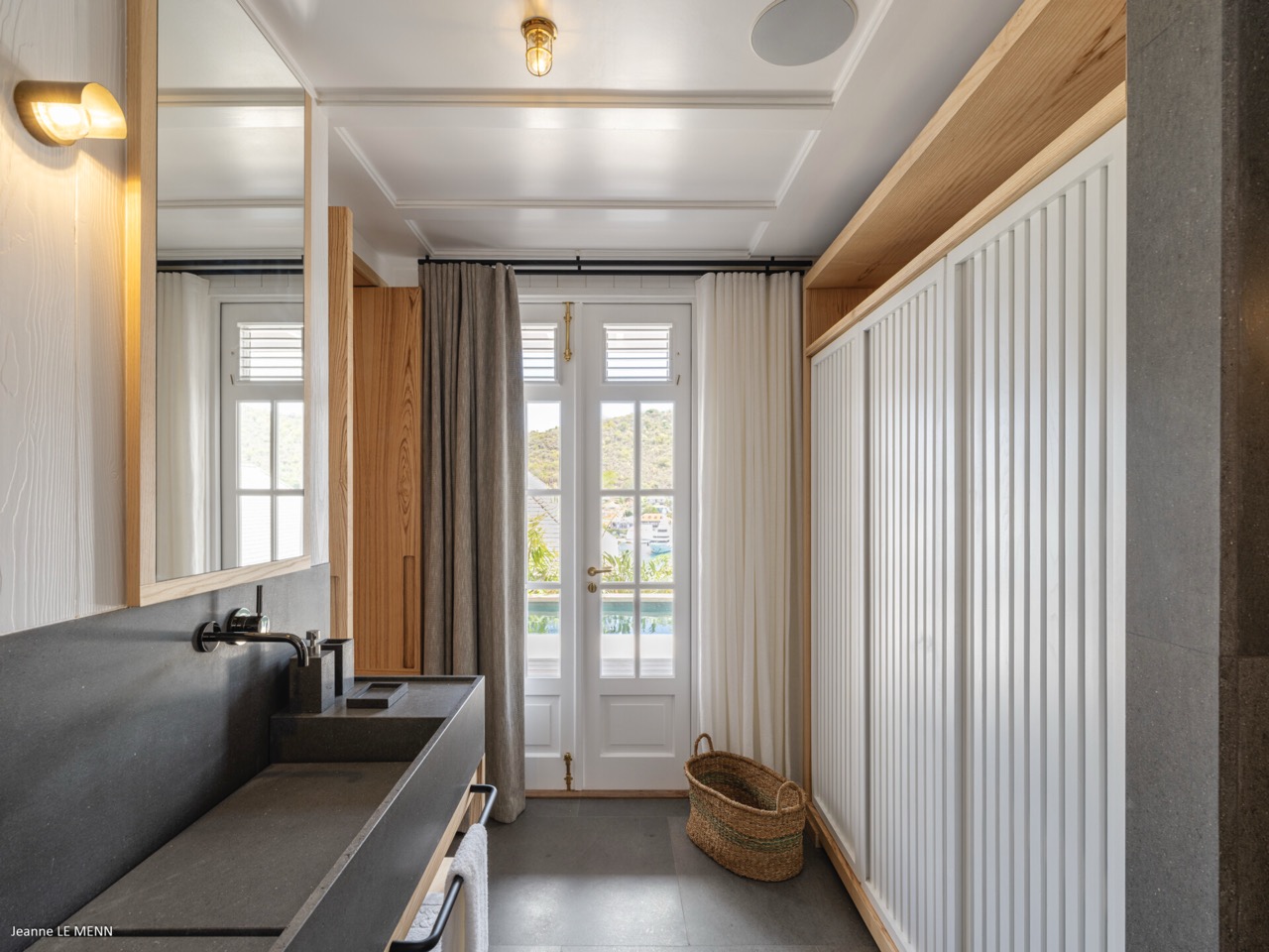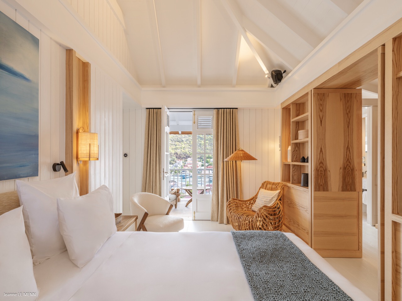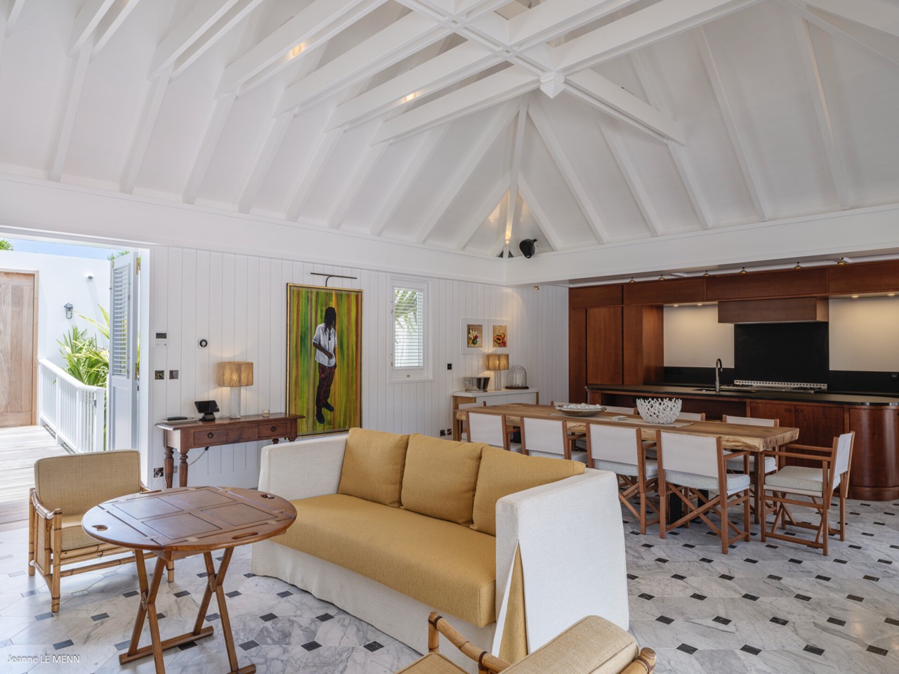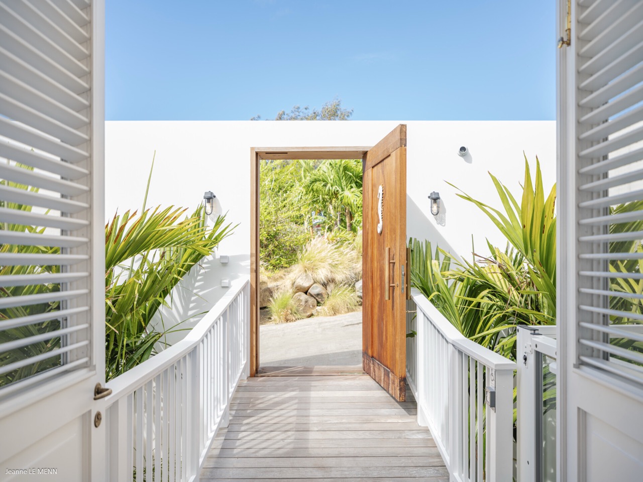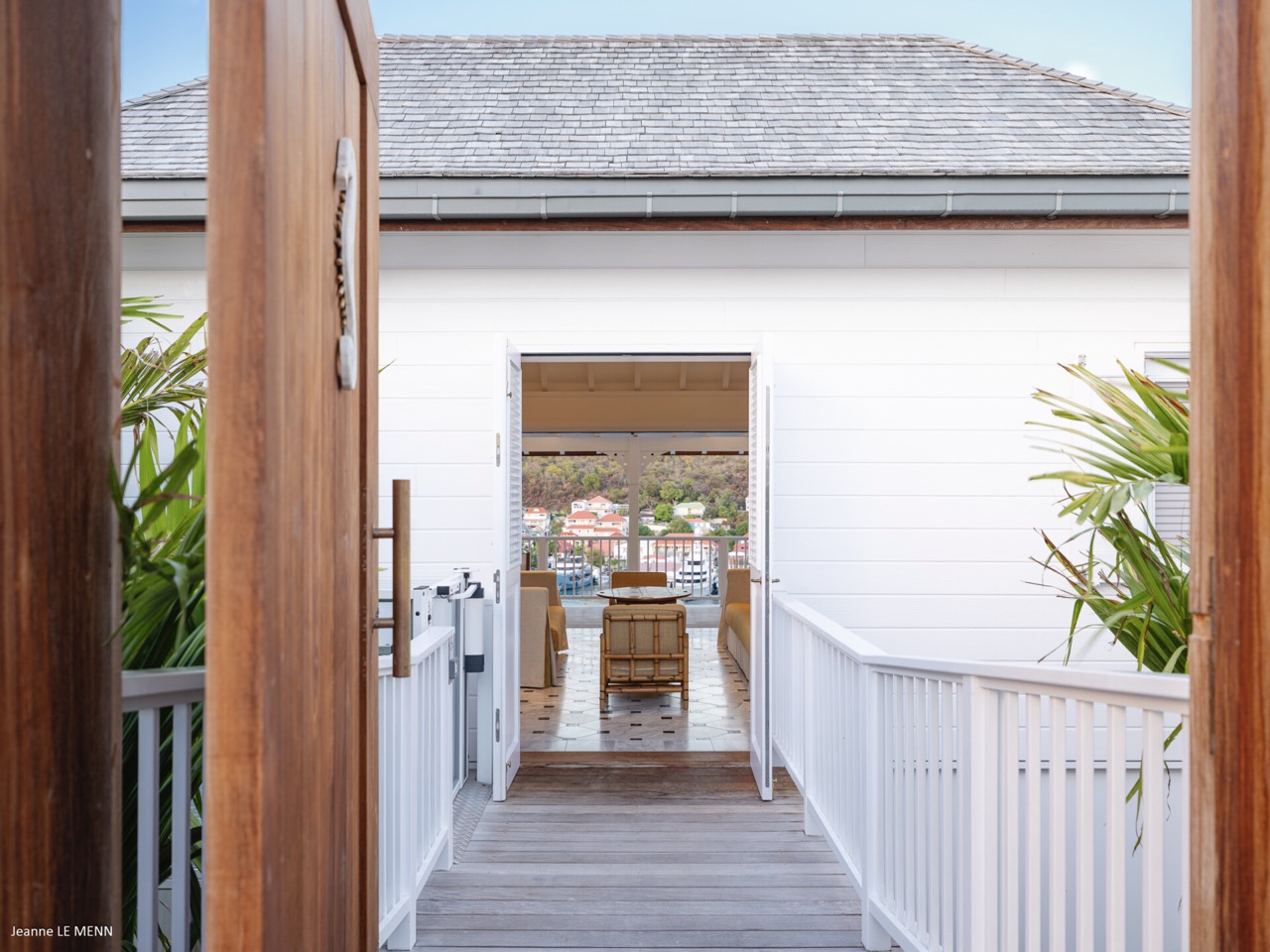 Villa Hippocampe is a bright and inviting four-bedroom retreat set along the left hillside of Gustavia’s harbor, unfolding over two levels with the ease and charm of a contemporary Caribbean manor. Its generous layout makes it ideal for groups, offering a variety of indoor and outdoor living areas where everyone can relax comfortably while still enjoying privacy. Inside, high ceilings and soft, coastal tones establish a calm, breezy atmosphere. Caribbean artwork adds warmth and personality throughout. On the upper level, the main living space opens onto a terrace perfectly positioned for watching the harbor’s rhythm. A fully equipped kitchen—complete with a small auxiliary prep area—adjoins the living room, while both indoor and outdoor dining areas give you the choice between meals in cool comfort or dinners overlooking the twinkling lights of Gustavia. The primary bedroom also sits on this level, peaceful and spacious, with soothing views of the port and direct access to the terrace. Three additional bedrooms are located downstairs: two beside the pool and a third set slightly apart to ensure extra seclusion. Each bedroom feels airy and restful, designed for easy island living. The pool terrace is a natural gathering spot, with a heated pool, sun loungers, and shaded corners that invite long conversations or quiet moments with a book. A small kitchenette beside the pool adds convenience, making outdoor living seamless—from late-afternoon dips to relaxed lunches in the sun. In the heart of Gustavia, Villa Hippocampe blends modern comfort with the lively charm of harborfront life. With its views, space, and effortless access to the town’s boutiques, restaurants, and galleries, it offers an ideal setting for guests seeking both sophistication and simplicity by the sea.
