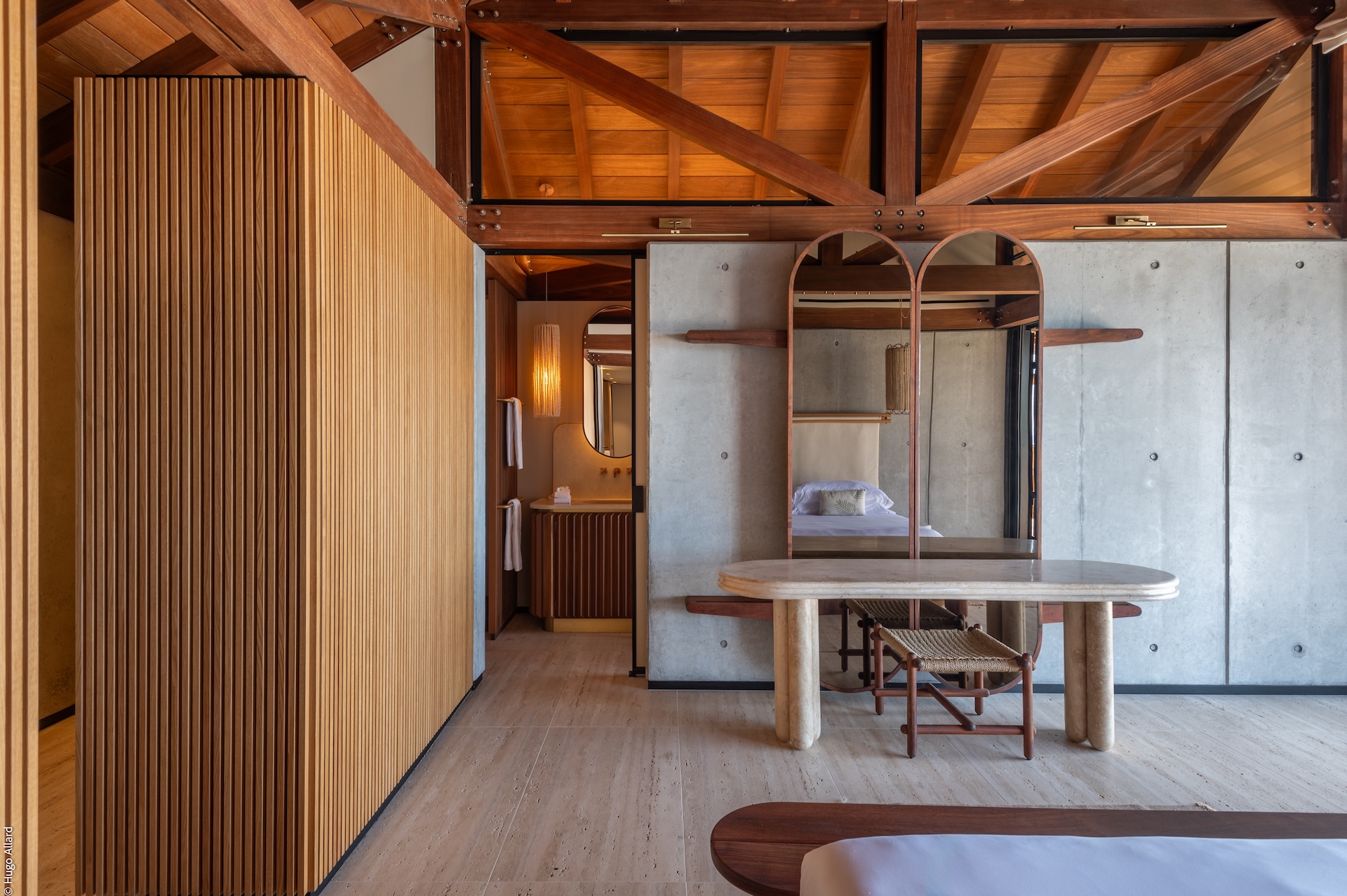 King bed, opens onto the terrace and offers both interior and exterior access. It includes air-conditioning, blackout curtains, a smart TV, a safe, an ensuite bathroom
