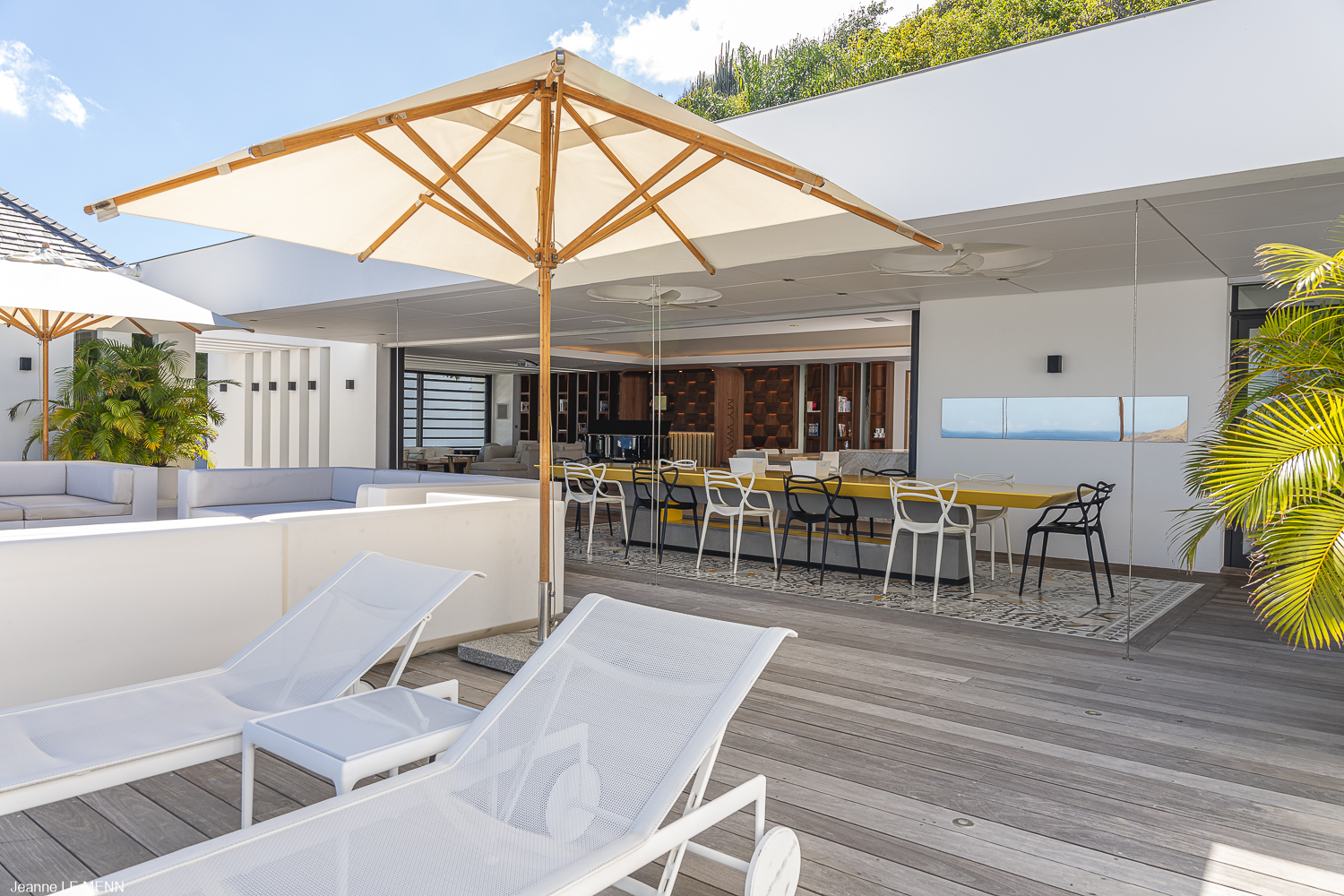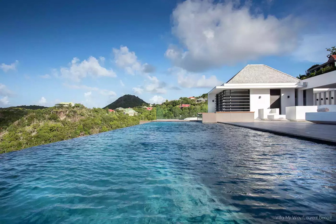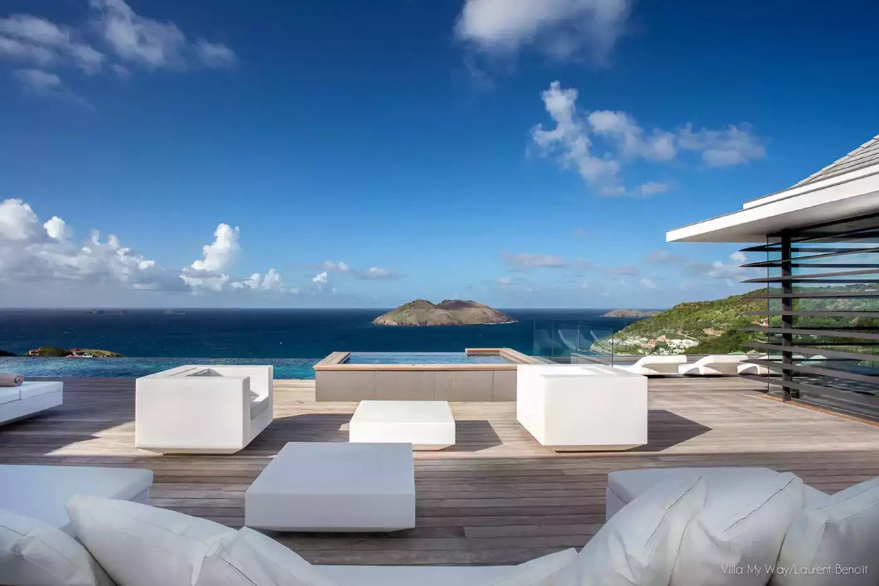 Iconic décor and uncompromising luxury are everywhere you turn when you choose Villa My Way for your St. Barts getaway. High on the hills of Colombier overlooking Flamands Beach, this newly-constructed, ultra-modern villa boasts of what lies in store from the moment you make your approach: the entryway stairs, reminiscent of piano keys, lead directly to a sleek black baby grand, and that’s only the beginning of the delights ahead. Villa My Way’s name and Sinatra-themed décor are no accident. Every detail of this luxe property is meant to send a message of nearly-decadent indulgences. Indoors on the main floor, you’ll find Philippe Stark and Le Corbusier furniture, a gadget-filled chef’s kitchen, and dining room that fully opens to create an alfresco dining experience, and three artfully decorated bedrooms, each with its own private entrance, a magnificent ocean view, its own en suite bathroom and terrace. Outside a remarkable terrace-wide, heated infinity pool offers limitless views of sun and sky and additional small pool plenty of comfortable conversation and seating areas in sun and shade, and steps down to two more equally-equipped bedrooms and a thoughtfully-equipped fitness room. Describing the home’s expansive layout alone doesn’t do justice to the endless extra touches that make My Way a true gem. The property is lushly landscaped, offering jewel-tone contrasts to St. Barts’ crystal turquoise waters. The unique custom kitchen backsplash echoes the villa’s overall theme by spelling out the words to Sinatra’s “My Way,” while every bedroom and bathroom is stocked with custom-embroidered towels and plush robes. The terrace furniture glows with soft colors at night, ensuring that the outdoors beckons no matter the hour and creating a vibrant setting for entertainment, while a wall-sized screen drops from the living area’s ceiling, converting the space into a high-tech media room. Beyond the villa’s unique bounties, there are also the amenities that you simply can’t live without — ample parking, magnificent interior design, a wine vault, floor-to-ceiling glass walls and windows, a Jacuzzi and comfortable sun loungers, a surround sound system and Wifi. The property is close to the famed Colombier beach trail, offering access to St. Barts’ natural marine reserve and one of the best white sand beaches on the island. The airport and the central hub of Gustavia with its glamorous shopping and dining are just a short drive away. Add to all of that the wide array of concierge services offered by One St Barts: from private dinners cooked by the island’s best chefs to arranging for private yacht excursions or spa treatments, it’s always our goal to combine the very best properties with the very best services.