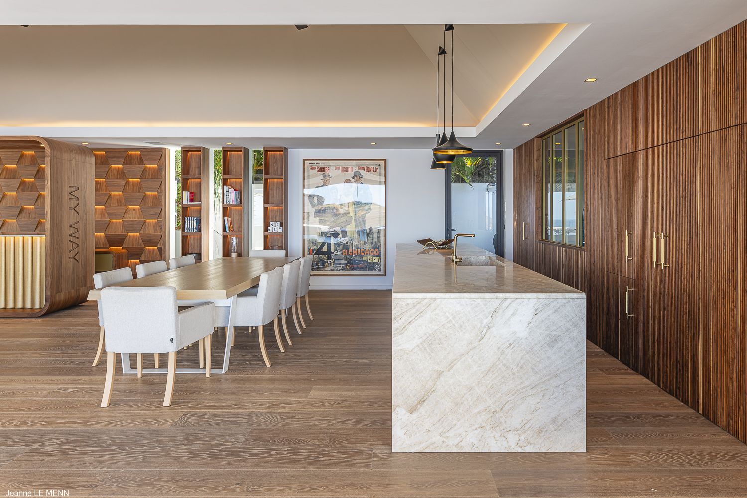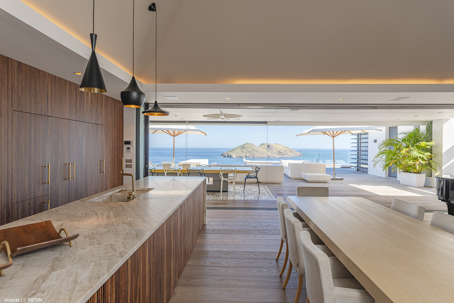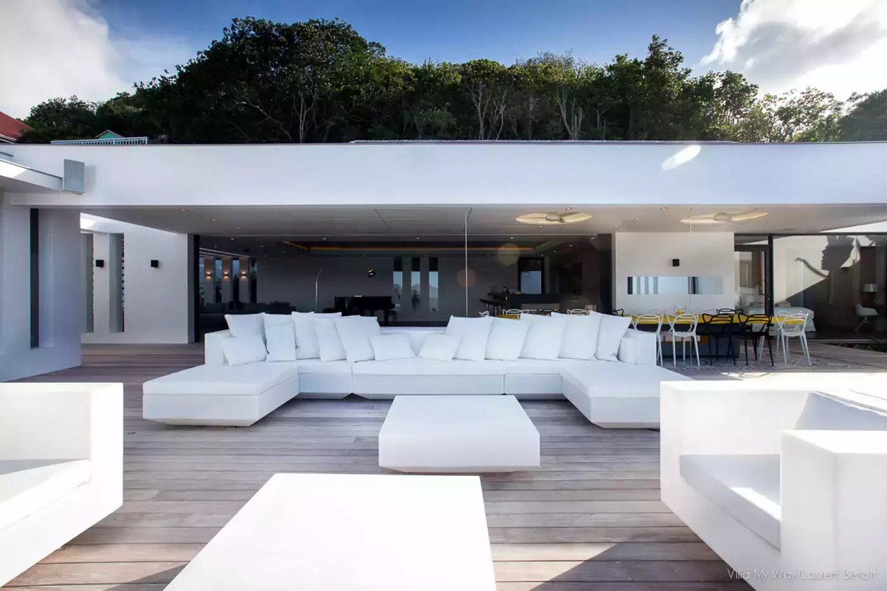 Iconic décor and uncompromising luxury are everywhere you turn when you choose Villa My Way for your St. Barts getaway. High on the hills of Colombier overlooking Flamands Beach, this newly-constructed, ultra-modern villa boasts of what lies in store from the moment you make your approach: the entryway stairs, reminiscent of piano keys, lead directly to a sleek black baby grand, and that’s only the beginning of the delights ahead. Villa My Way’s name and Sinatra-themed décor are no accident. Every detail of this luxe property is meant to send a message of nearly-decadent indulgences. Indoors on the main floor, you’ll find Philippe Stark and Le Corbusier furniture, a gadget-filled chef’s kitchen, and dining room that fully opens to create an alfresco dining experience, and three artfully decorated bedrooms, each with its own private entrance, a magnificent ocean view, its own en suite bathroom and terrace. Outside a remarkable terrace-wide, heated infinity pool offers limitless views of sun and sky and additional small pool plenty of comfortable conversation and seating areas in sun and shade, and steps down to two more equally-equipped bedrooms and a thoughtfully-equipped fitness room. Describing the home’s expansive layout alone doesn’t do justice to the endless extra touches that make My Way a true gem. The property is lushly landscaped, offering jewel-tone contrasts to St. Barts’ crystal turquoise waters. The unique custom kitchen backsplash echoes the villa’s overall theme by spelling out the words to Sinatra’s “My Way,” while every bedroom and bathroom is stocked with custom-embroidered towels and plush robes. The terrace furniture glows with soft colors at night, ensuring that the outdoors beckons no matter the hour and creating a vibrant setting for entertainment, while a wall-sized screen drops from the living area’s ceiling, converting the space into a high-tech media room. Beyond the villa’s unique bounties, there are also the amenities that you simply can’t live without — ample parking, magnificent interior design, a wine vault, floor-to-ceiling glass walls and windows, a Jacuzzi and comfortable sun loungers, a surround sound system and Wifi. The property is close to the famed Colombier beach trail, offering access to St. Barts’ natural marine reserve and one of the best white sand beaches on the island. The airport and the central hub of Gustavia with its glamorous shopping and dining are just a short drive away. Add to all of that the wide array of concierge services offered by One St Barts: from private dinners cooked by the island’s best chefs to arranging for private yacht excursions or spa treatments, it’s always our goal to combine the very best properties with the very best services.