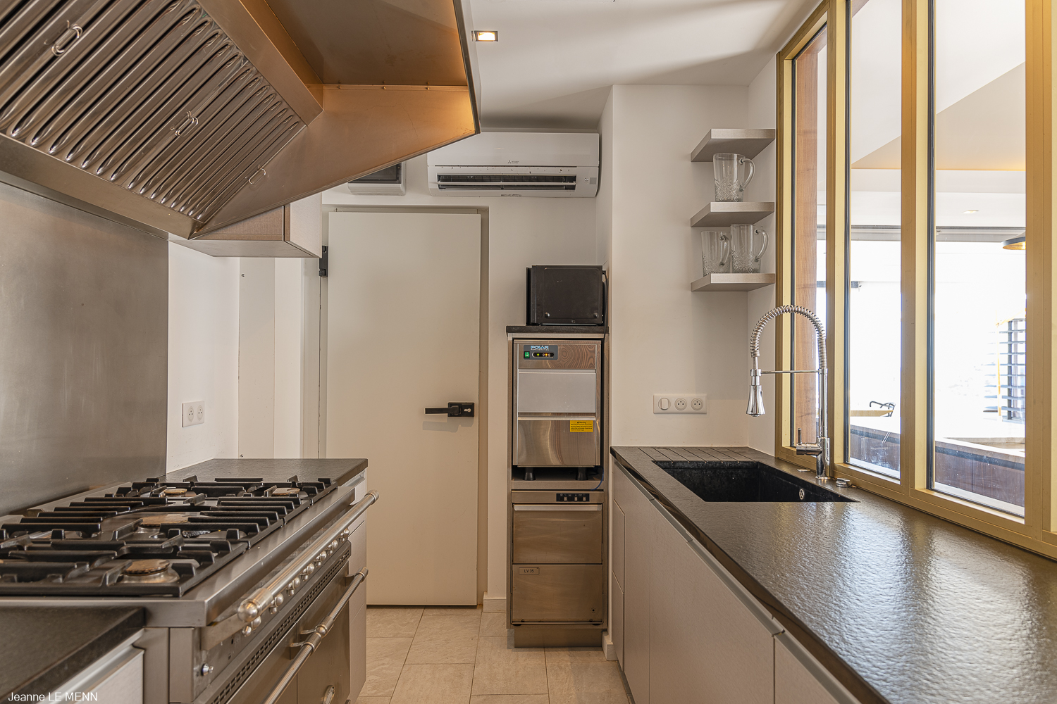 Fully equipped air-conditioned Gourmet kitchen with breakfast bar, professional gas stove and oven, 2 fridges and professional cold room, 2 dishwashers, wine cellar, microwave, professional ice maker, Nespresso machine and regular coffee machine, food processor, blender, plunging mixer, electric kettle, toaster, professional knifes. Service for 28. Gas BBQ.
